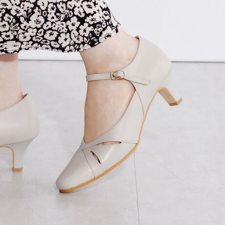 甲にデザインされたカットワークが程よい抜け感で、足をきれいに見せてくれる一足。足を締め付けない絶妙なカットラインと足首のストラップが快適な履き心地で、さまざまなシーンに活躍します。