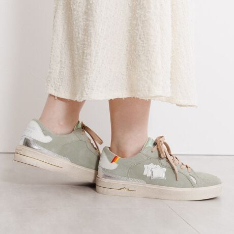大人の女性にふさわしいハイエンドなスニーカーは、遊び心の効いたカラーリングとアイコニックな3連スターのパッチがポイント。