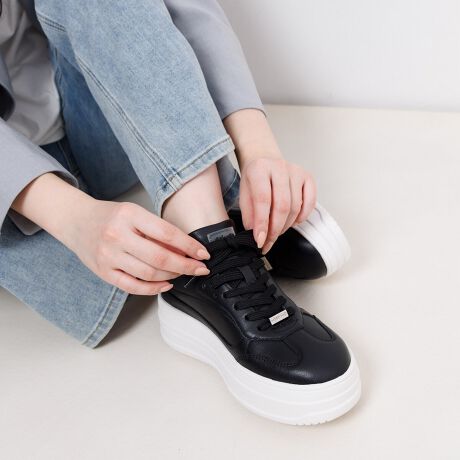 ボリュームのある厚底ソールが目を引くコートソールスニーカー。