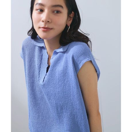 旬なスキッパーデザインをやや長めの着丈に、さらっとした軽いサマーニット素材で仕上げた1枚。