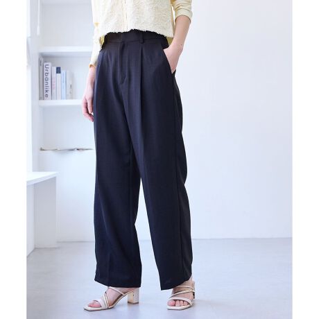 24春夏モデルの2タックデザインより、お腹周りがすっきりと見える1タックデザインに変更し、フロント中心タックから流れるセンタープレスがすっきりと細見えして脚長美脚効果が期待できるシルエットにしています。