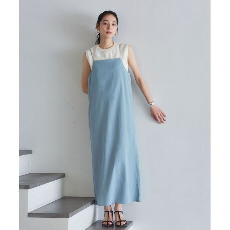 肩紐の結び方で雰囲気を変えて着用できるマルチway仕様、ワンパターンになりがちなキャミワンピですが着回しも楽しめます。