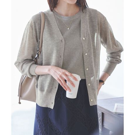 ・ベーシックに着られる、長袖のVネックカーディガン。