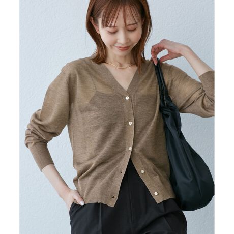 ・ベーシックに着られる、長袖のVネックカーディガン。