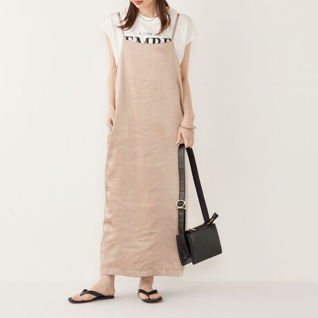 ふっくらとした表情のあるサテン生地を使用したキャミワンピ。