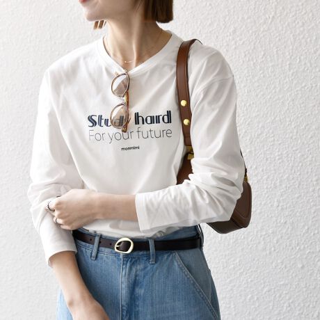 程よい厚さのアイテムなので、タックインをしたり、カーディガンやジャケットの中にも着ていただきやすいです。