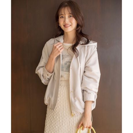 ・ふんわり丸みを帯びたシルエットが着映える・フードの有り/無しで雰囲気を変えて楽しめる・インナーや体型を選ばない、ゆとりあるラグラン袖・裾のゴムドロストを絞ればシルエット調整が可能・ゴールド金具使いがさりげないポイント・春らしく柔らかいカラーリングがフェミニンな印象に