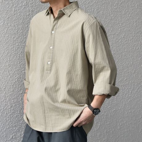 プルオーバータイプで襟元がスキッパーデザインになっており、程良いリラックス感を演出できるアイテムとなっております!