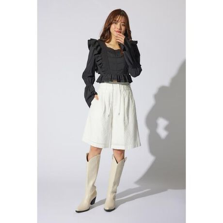 【レイヤードデザインとコットンレースでテイストをMIXさせたハーフパンツ】■ポイントコットンレースで仕上げることで、フェミニンなスタイリングも可能にしたハーフパンツ。ウエストのレイヤードデザインで今年らしく着こなせます。ヒップから裾に向かって程よく広げることで、足を美シルエットに演出します。■ディテールレイヤードしたような、ウエストディテールがポイント。■スタイリングシンプルなトップス合わせも即おしゃれに決まります。パンツのシルエットも綺麗なので、あえてトップスをペプラムにしてハーフパンツスタイルを楽しむのも◎今年らしくウエスタンブーツで合わせてボヘミアンスタイルを楽しんでも◎ショートブーツで合わせる時はソックスをブーツの上に少し見せて着用すると今年らしいスタイリングに。■生地透け感:なし裏地:あり伸縮性:なし光沢感:なし厚さ:薄手■商品のお気に入り登録お気に入りアイテムの再入荷・在庫1点などの通知を受け取ることができます。[注意事項]※画像の商品はサンプルです。実際の商品と仕様、加工が若干異なる場合があります。※画像の商品は光の照射や角度、お使いのモニター環境により、実物と色味が異なる場合がございます。※着用、お取り扱いの際は、アテンションタグをご確認ください。