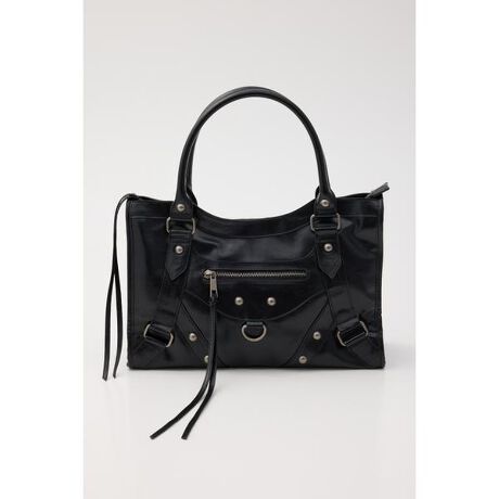 【STUDS BIG HAND BAG】■POINT:今季トレンドの大きめハンドバッグ。■DETAIL:エッジの効いたスタッズデザインがスタイリッシュでモードな印象をプラス。大容量なサイズ感もポイントです。■STYLING:いつものコーディネートのワンポイントにおすすめ。取り入れるだけでワンランク上げてくれるアイテムです。■FABRIC/MATERIAL:合皮素材を使用しています。※合成樹脂を使用しています。使用回数にかかわらず、時間の経過と共に劣化が生じ、剥離やひび割れ、光沢の減少等が生じます。汚れが付着したままの放置は劣化を早めますのでご注意下さい。過度な摩擦や引っ張りは樹脂の剥離の原因になりますのでお避け下さい。保管は高温多湿を避け、光の当たらない場所に保管して下さい。濃色は色落ちする場合があります。濃淡の配色組み合わせは避けてください。※商品画像はサンプルのため、色味やサイズ、素材の混率等の仕様に変更がある場合がございますので、予めご了承ください。※一部予約商品につきましては生産上の都合によりお届け予定日や店頭発売と前後する場合もございます。※追加生産商品は、一部の店舗、通販で販売中の場合がございます。予めご了承下さい。