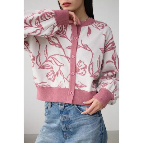 ■2WAY線花柄ジャガードカーディガン■ポイント鮮やかな花柄が目を惹く前後2way仕様のニット。■ディティールスタイリングのポイントになるジャガードで編み立てた花柄ニットカーディガン。異なる風合いの糸を2種類使い、立体感のある編地にしています。前後2wayなので、クルーネックカーディガン・プルオーバーとして着用が可能です。■スタイリングトレンドのコンパクトな丈感で、ワイドボトムやロングスカートなどと好相性です。■生地表面感のあるブークレ素材とストレッチ糸を、オリジナル柄のジャガードで編み立てたニットです。表情の異なる糸を花柄で編み立てることで、凹凸感を表現した素材です。透け感:なし裏 地:なし伸縮性:あり光沢感:なし