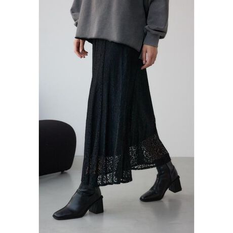 ■レースフレアスカート■ポイントウエストゴム仕様で総レースの裏地付きスカート。■ディティールフレアシルエットになっており女性らしさもあるスカートです。カジュアルなテイストにも合わせやすくシンプルなディティールに仕上げています。■スタイリングスウェット素材や夏にはTシャツなどと1枚合わせるだけで今年らしさの出る一着となっています。シンプルなデザインなのでどんなアイテムとの相性も良く、着回しの効く1枚となっております。■生地ラッセルレースを使用。透け感:あり裏 地:あり伸縮性:あり光沢感:なし[注意事項]※画像の商品はサンプルです。実際の商品と仕様、加工が若干異なる場合があります。※画像の商品は光の照射や角度、お使いのモニター環境により、実物と色味が異なる場合がございます。※着用、お取り扱いの際は、アテンションタグをご確認ください。