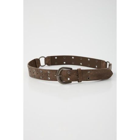 【RING STUDS BELT】■POINT:コーディネート映えするトレンド感のあるベルト。■DETAIL:アイレットとスタッズを交互に配置したデザインが目を引き、ベルト部分がメタルリングで接続されているのもポイント。■STYLING:4cmの程よい太さでデイリー使いしやすく、スタイリングにプラスするだけでトレンド感の出せるアイテム。ヴィンテージライクなブラウンと、デイリー使いしやすいブラックの2色展開になっています。■FABRIC/MATERIAL:合成皮革を使用しています。※合成樹脂を使用しています。使用回数にかかわらず、時間の経過と共に劣化が生じ、剥離やひび割れ、光沢の減少等が生じます。汚れが付着したままの放置は劣化を早めますのでご注意下さい。過度な摩擦や引っ張りは樹脂の剥離の原因になりますのでお避け下さい。保管は高温多湿を避け、光の当たらない場所に保管して下さい。濃色は色落ちする場合があります。濃淡の配色組み合わせは避けてください。※商品画像はサンプルのため、色味やサイズ、素材の混率等の仕様に変更がある場合がございますので、予めご了承ください。※一部予約商品につきましては生産上の都合によりお届け予定日や店頭発売と前後する場合もございます。※追加生産商品は、一部の店舗、通販で販売中の場合がございます。予めご了承下さい。