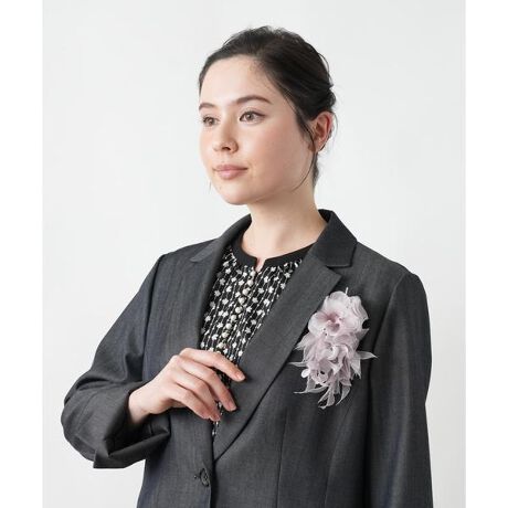 シルクオーガンジーやサテン素材を使用したフラワーモチーフのコサージュ。繊細で軽やかな素材がふわりとした立体感を生み出し、上品で優雅な雰囲気を演出。控えめながらも上品に輝くビジューをあしらい、さりげない華やかさをプラス。添えるだけでシンプルな装いにもエレガントなアクセントを加えてくれます。結婚式やパーティーなどの特別なシーンにふさわしく、定番のドレススタイルを一層引き立てる、洗練されたアクセサリーです。安全ピン留め。------------------------------------着用シーズン:春 透け感:あり-------------------------------------※商品の色味は、撮影場所や光のあたり具合、お客様のお使いの機器により色味が違って見える場合がございます。予めご了承ください。