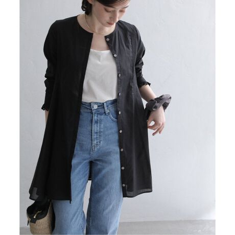 フロントボタンを開けて、羽織りとしても着用できるアイテムです。