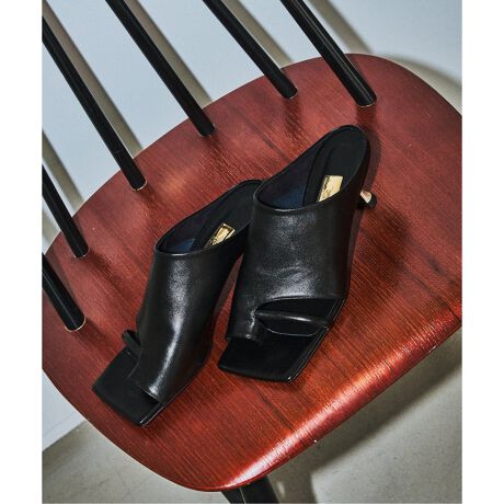 ワイドスクエアとメタルヒールでモードなシルエットながら、外側にストラップデザインを入れ足元に程よいニュアンス感を出しました。
