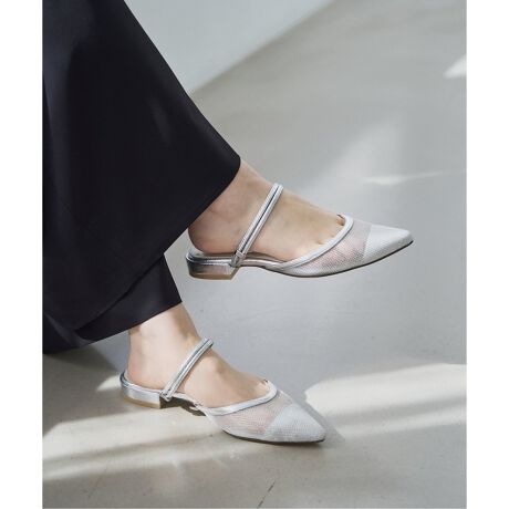前に倒した状態と、2本のストラップの間に足を通して頂く2通りの履き方で楽しんで頂ける嬉しいデザインです。