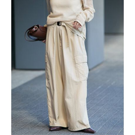 クシュっとしたナイロン素材で大人カジュアルにこなせるカーゴパンツ。