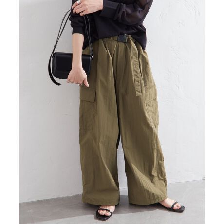 クシュっとしたナイロン素材で大人カジュアルにこなせるカーゴパンツ。