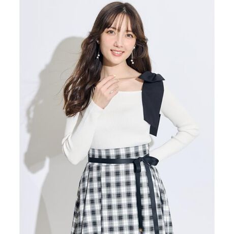 【展示会で注目を集めた、大人が品良く着映えるリボンアシメネックニットプルオーバー】【Point】・開きすぎないヘルシーな肌見せと品良く存在感を放つリボンが、大人可愛い着映えを叶えるアシメネックニットプルオーバー。・体にフィットする細身シルエットと、首回りをすっきり見せてくれるネックデザインが着やせ効果を期待できる一着です。・柔らかく伸縮性の高いニットになっており、リブ編みが体のラインを拾いにくく、フィット感のあるサイズ感でも安心して着ていただけます。ケア方法:ドライクリーニング透け感:なし裏地:なし伸縮性:あり光沢感:なし生地の厚さ:中肉