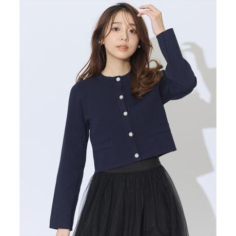 【きちんと見えしながら品の良い着映えを叶える、ビジューボタンニットジャケット】【Point】・高見えする、目の詰まったほど良くハリのあるニットが、ワンランク上の着こなしに仕立てるニットジャケット。・ビジューボタンが品の良い華やかさをプラスします。・首元はシンプルなクルーネックが、大人っぽく洗練された雰囲気を醸し出します。・コンパクトなシルエットと計算されたショート丈が、スタイルアップ効果を発揮しながら、女性らしくエレガンスな印象に仕立てます。・羽織りとしてはもちろん、フロントボタンを留めてトップスとしての着用もオススメです。ケア方法:手洗い可能透け感:なし裏地:なし伸縮性:あり光沢感:なし生地の厚さ:中肉
