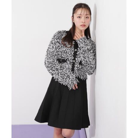 リボンヤーンツイードカーディガンとミニワンピースの2点セット。リボンヤーンの繊細で上品な編み地が華やかさを演出し、存在感のあるデザインです。カーディガンは程よいゆったり感があり、羽織るだけでこなれた印象をプラス。ミニワンピースは体に優しくフィットするシルエットで、女性らしいラインを引き立てます。セットで着れば統一感のあるエレガントなスタイリングが完成し、それぞれ単品使いでも幅広いコーディネートが楽しめます。デートやお出かけ、特別なシーンにもぴったりなSETUPです。※撮影時照明の関係により、色味が違って見える場合がございます。またパソコン・スマートフォンなどの環境により、若干製品と画像のカラーが異なる場合もございます。予めご了承ください。商品の色味は、商品単品画像をご参照下さい。※商品画像はサンプルのため、色味やサイズ等の仕様に変更がある場合がございますので、予めご了承ください。