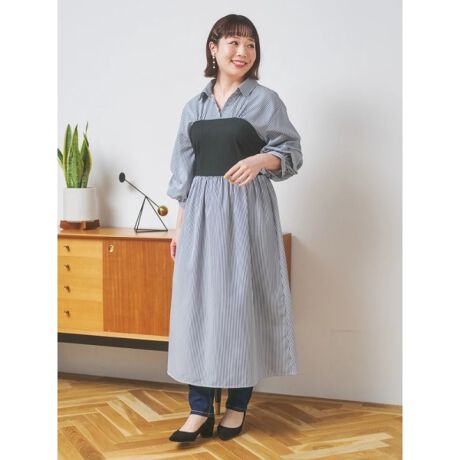 シャツワンピにビスチェをレイヤードしたようなデザインのこなれ見えワンピース。