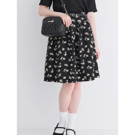 嬉しいベルト付き!レトロなムード漂う花柄のフレアスカート。