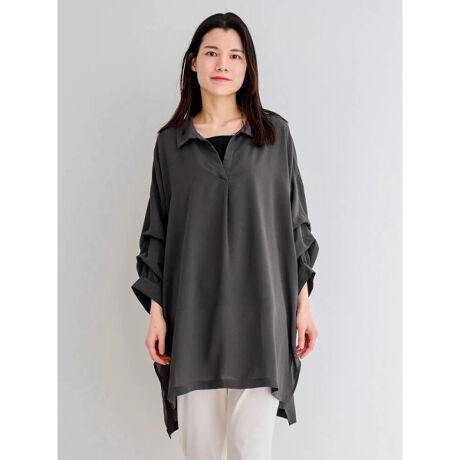 袖タックツイルBIGスキッパーシャツ