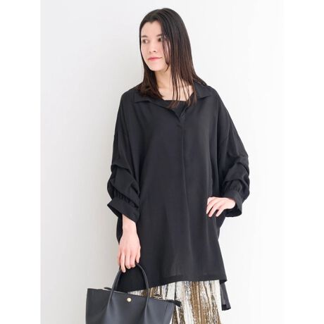 袖タックツイルBIGスキッパーシャツ