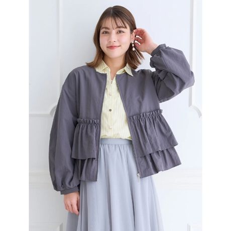 ふんわりとフリルを重ねたペプラムシルエットに心ときめく甘ジャケット