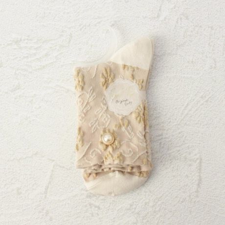 ◆プティパ 逆スパ ビジュラメ フラワー クォーターソックス