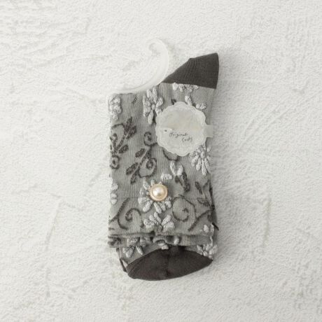 ◆プティパ 逆スパ ビジュラメ フラワー クォーターソックス