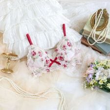カップにはお花を包み込むようにギャザーを入れたチュールをたっぷりとあしらうことで、上品な可愛らしさをプラスしました。ストラップはお花のカラーに合わせて2色でデザインしています。カラー展開はインポートを意識した、おしゃれな大人の女性を演出してくれるコレクションです。