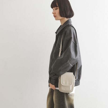「ぷっくり」としたシルエットとZIPがアクセントになっているフラップミニショルダーバッグ。