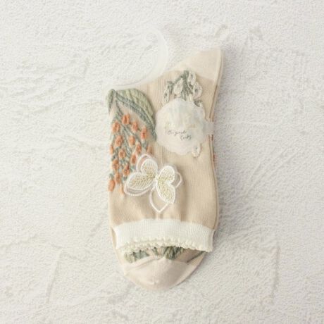 ◆プティパ 逆スパ 花畑 蝶レース クォーターソックス