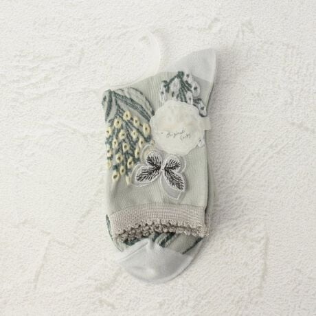 ◆プティパ 逆スパ 花畑 蝶レース クォーターソックス