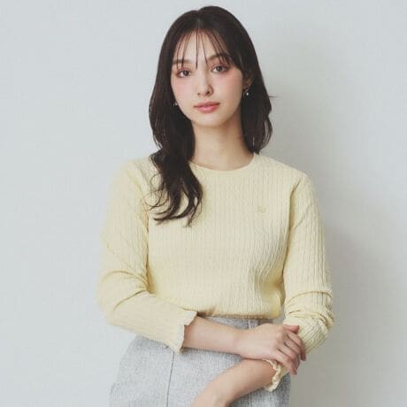 ・コンパクトなケーブル編みの身頃に袖先のフリル袖が、フェミニンさと知的な雰囲気を融合させ、様々なシーンで活躍します。