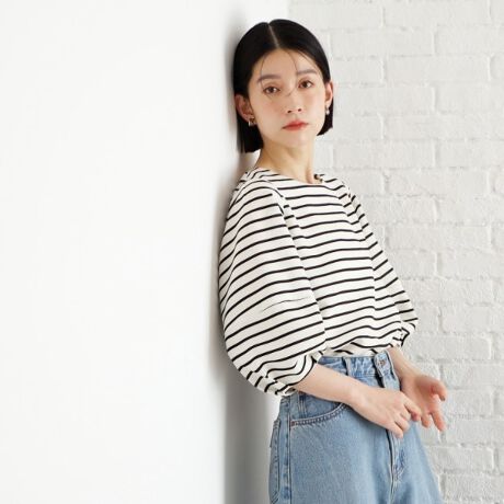 このブラウスは、シンプルなテーパードパンツやスカートとの相性が良く、特にウエストをインすることで、すっきりとした印象に仕上がります。