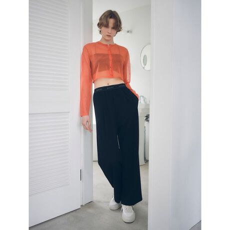 人気だったジャガードゴムタックパンツが、素材とカラーを変えて登場。ミニ丈のトップスと合わせて、ウエストゴムを見せるスタイリングがオススメ。ウエスト部分がゴム仕様に見えない綺麗なスラックスなので、綺麗めスタイルにもピッタリのアイテムです。