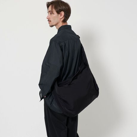 やや大きめのサイズ感で、タスキを掛けたような体に馴染むフォルムシルエットが特徴のショルダーバッグです。