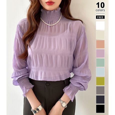 素材はシアーですが、ハイネックで長袖なので若い人は春用か秋用になるでしょうが、私は寒がりなので夏でも冷房対策にちょうどいいです。
