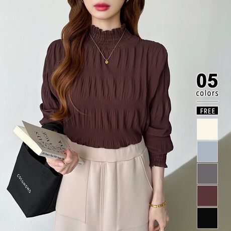 裏起毛 ハイネック ブラウス フリルハイネック シャーリング フリルブラウス フリル 長袖