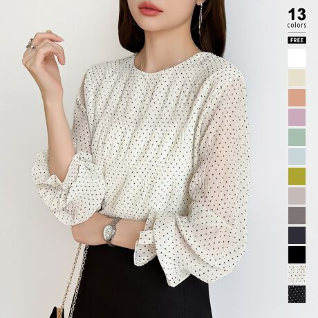 人気のシャーリングブラウスに