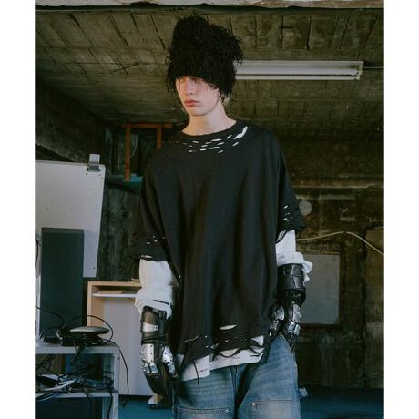 コットンのボディとワッフル生地のカットソーのレイヤード仕様。ゆったり目なシルエットで、ダメージ加工が合わさることでトレンド感を演出してくれます。レイヤードしているワッフル生地も分厚くなく、使いやすく着回し効くアイテムです。※ダメージ加工に関しては1点1点若干の個体差はございます。FR(13)NDS/フレンズ「恐怖」・「不吉」を連想させる一方で「パワーの象徴」・「もう1つ上の世界」など、様々な感情、表情を持ち合わせた未知の数字。それが(13)である。互いの個性を認め合い、常に新しいものへと進化を続け、高め合える仲間でありたい。そんな思い込めた「FR(13)NDS」。無数の仲間のフィルターを通して見えてくる新しいもの・コトを共感し共有することにより自由に表現し合えるブランド。素材やシルエットへのこだわりと共に、ディティールやプリントなど遊び心も取り入れ、様々な感情や表現を持った服(仲間)。