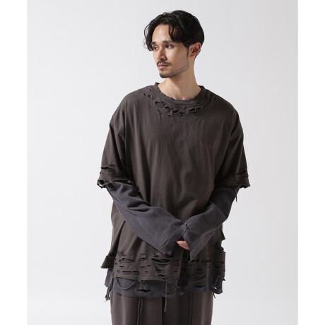 コットンのボディとワッフル生地のカットソーのレイヤード仕様。ゆったり目なシルエットで、ダメージ加工が合わさることでトレンド感を演出してくれます。レイヤードしているワッフル生地も分厚くなく、使いやすく着回し効くアイテムです。※ダメージ加工に関しては1点1点若干の個体差はございます。FR(13)NDS/フレンズ「恐怖」・「不吉」を連想させる一方で「パワーの象徴」・「もう1つ上の世界」など、様々な感情、表情を持ち合わせた未知の数字。それが(13)である。互いの個性を認め合い、常に新しいものへと進化を続け、高め合える仲間でありたい。そんな思い込めた「FR(13)NDS」。無数の仲間のフィルターを通して見えてくる新しいもの・コトを共感し共有することにより自由に表現し合えるブランド。素材やシルエットへのこだわりと共に、ディティールやプリントなど遊び心も取り入れ、様々な感情や表現を持った服(仲間)。