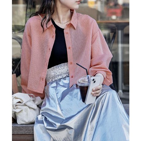 etoll. エトル シアー素材のストライプ柄が洒落見えするクロップドシャツ。