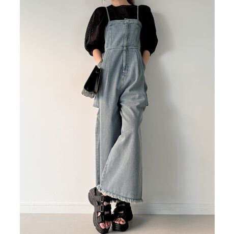 レイヤードデザインデニムオールインワン