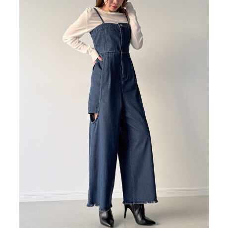 レイヤードデザインデニムオールインワン