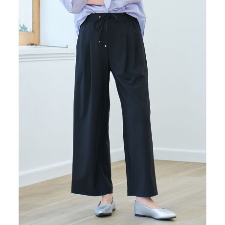 ・ウエストゴムで穿き心地楽々・ウエストの前部分をフラットにし、ゴールドのハトメにすることで、トップスインでもすっきりと見えるこだわりのデザイン・美しいシルエットで普段使いやお仕事シーンにもおすすめ